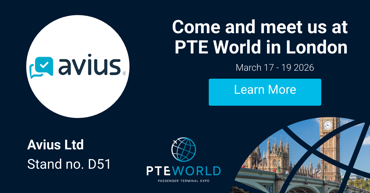 Avius is returning to the world-leading airport industry event, Passenger Terminal Expo 2026, taking place at ExCeL London from 17–19 March 2026. This flagship global event brings together more than 10,000 aviation professionals, with hundreds of exhibitors and industry speakers focused on shaping the future of airport operations and passenger experience.